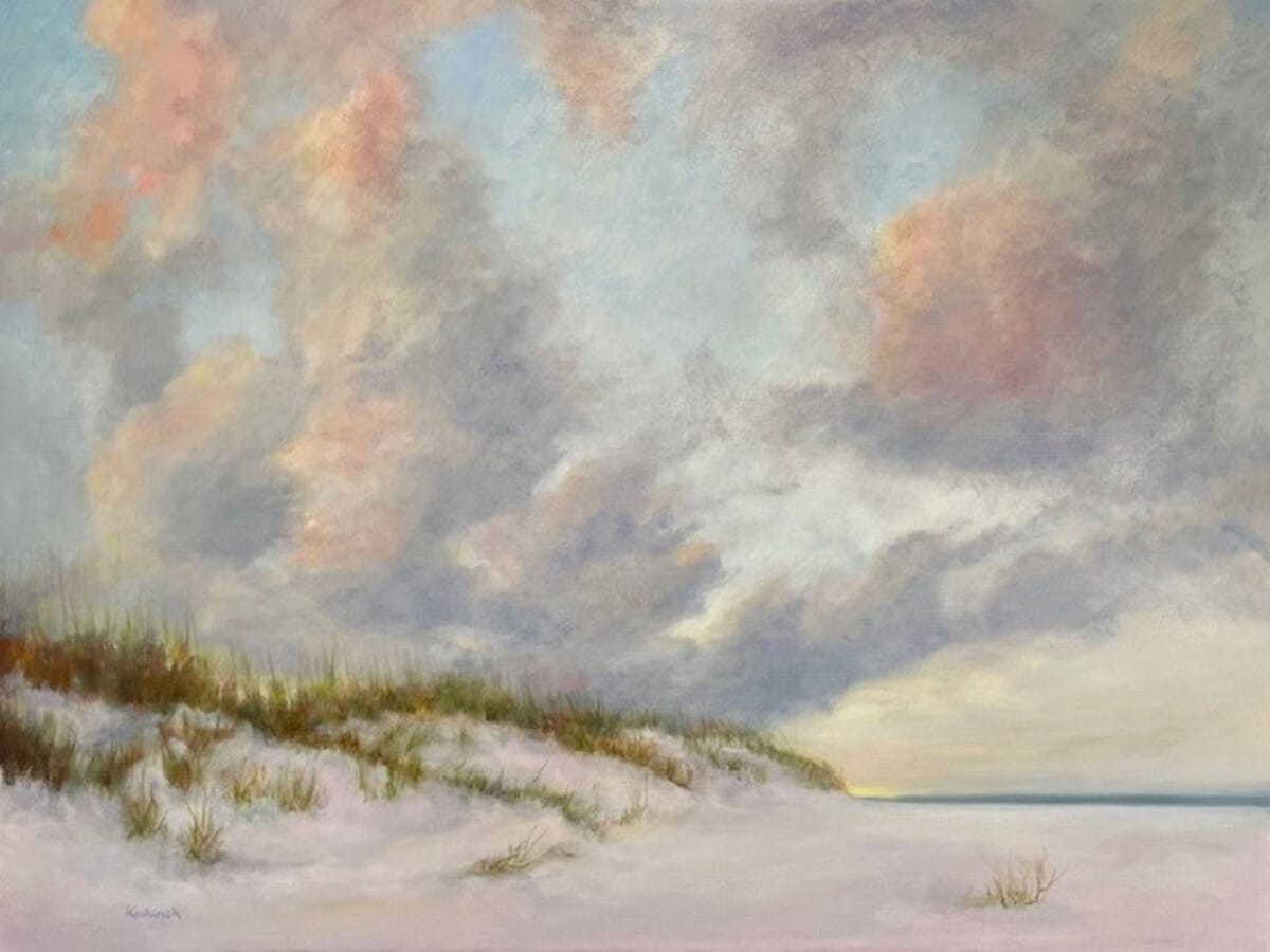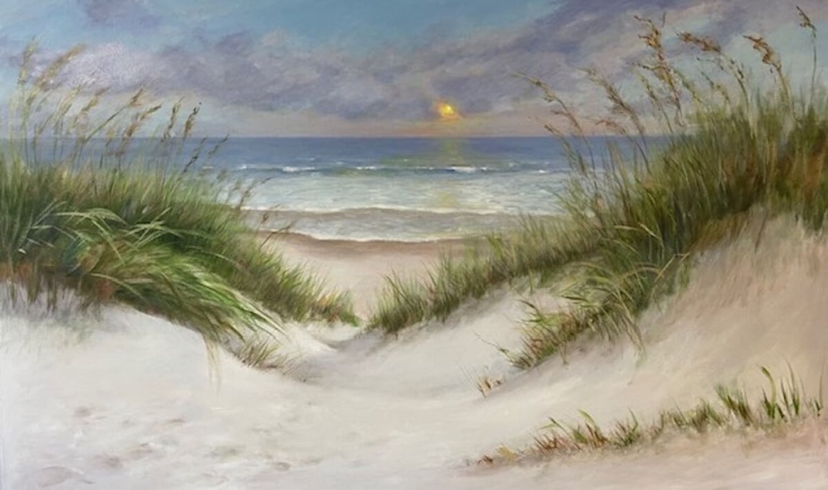 She also paints “portraits” of the ocean on location (en plein air) and uses her photographs for referencing shapes. Having lived near or by the ocean her entire life, first in New Hampshire and Massachusetts, and now here in Florida, she studies, interprets, and paints the ocean with as much passion as she paints her portraits.